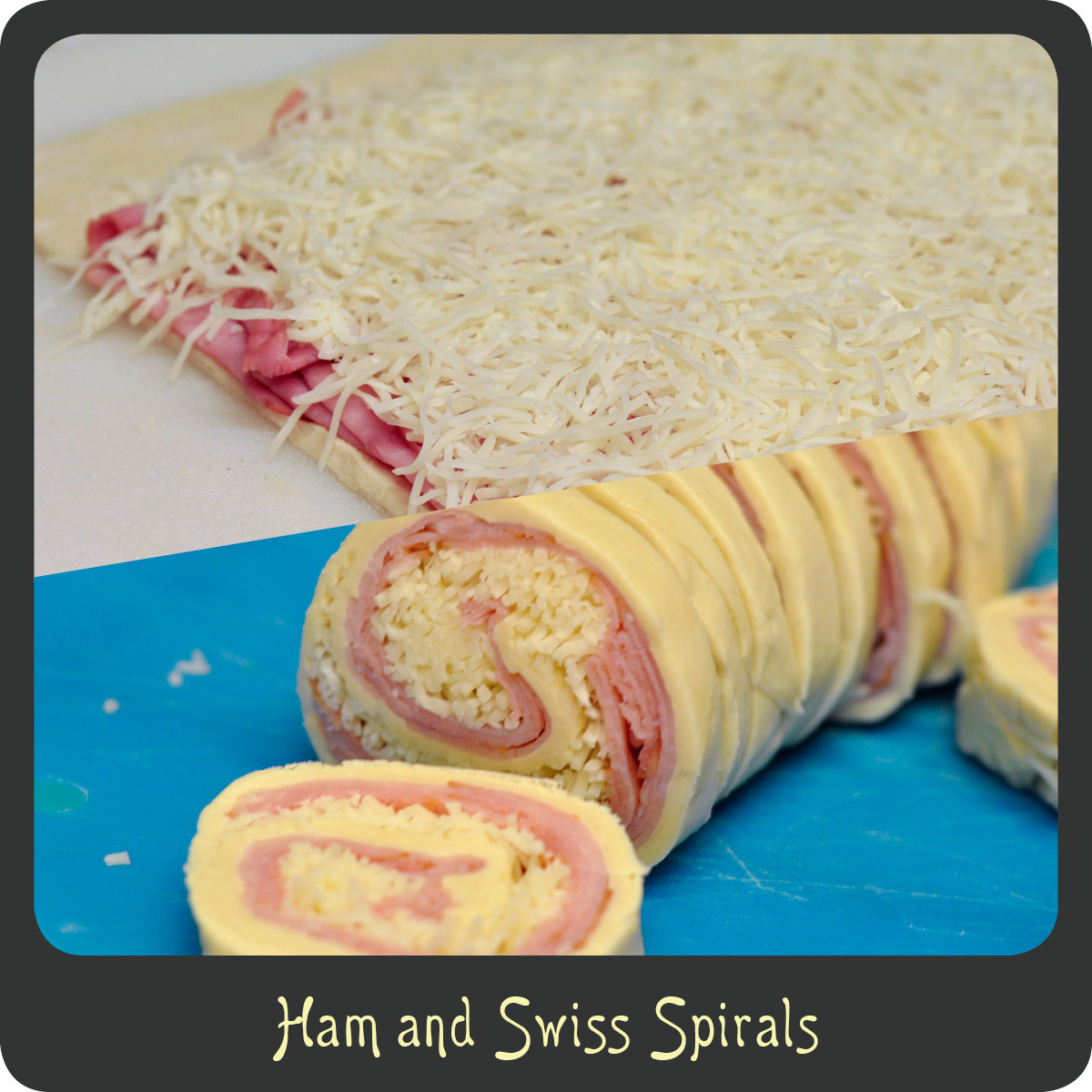 - Top puff pastry with an even layer of the ham and then sprinkle with cheese leaving one edge exposed about an inch back.