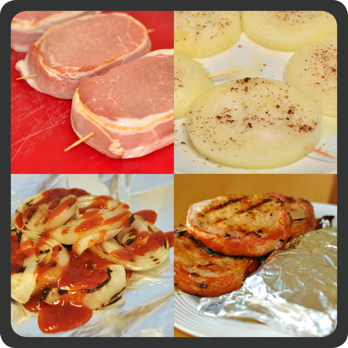 Recipe—BBQ Bacon Wrapped Pork Chop with Grilled Onions