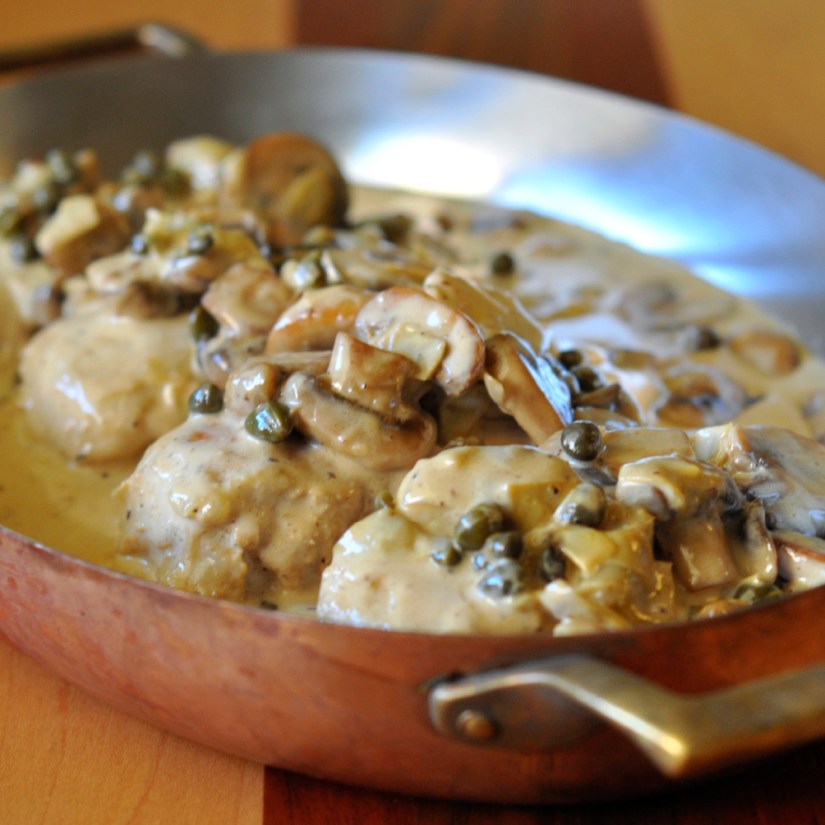 This is a quick and simple chicken recipe that is easy enough to enjoy mid-week after work and impressive enough to serve up at a dinner party. Every time I have made this, my guests and family have “cleaned” their plates. It is a lovely creamy comfort dish that has loads of flavor. The Italian dressing from the marinated chicken and the capers give the dish a nice little zest and goes with the earthy mushroom flavor nicely. I love it served with rice or potatoes. You just will want to put this rich sauce over everything on your plate. Mmmmmm… If you actually have any leftovers they are great for lunch the next day! My work days always seem better when I know I will have a yummy lunch to enjoy later.