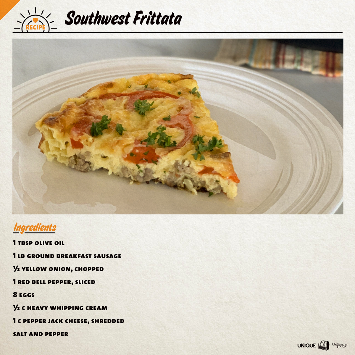 My current brunch obsession is frittatas. You can basically throw any combination of ingredients together in a skillet and as long as you have eggs, heavy cream, and cheese, you can make a delicious meal. My southwest frittata isn’t even on the blog yet so you are going to be the first to get the recipe. (Don’t worry, it will be posted soon!)