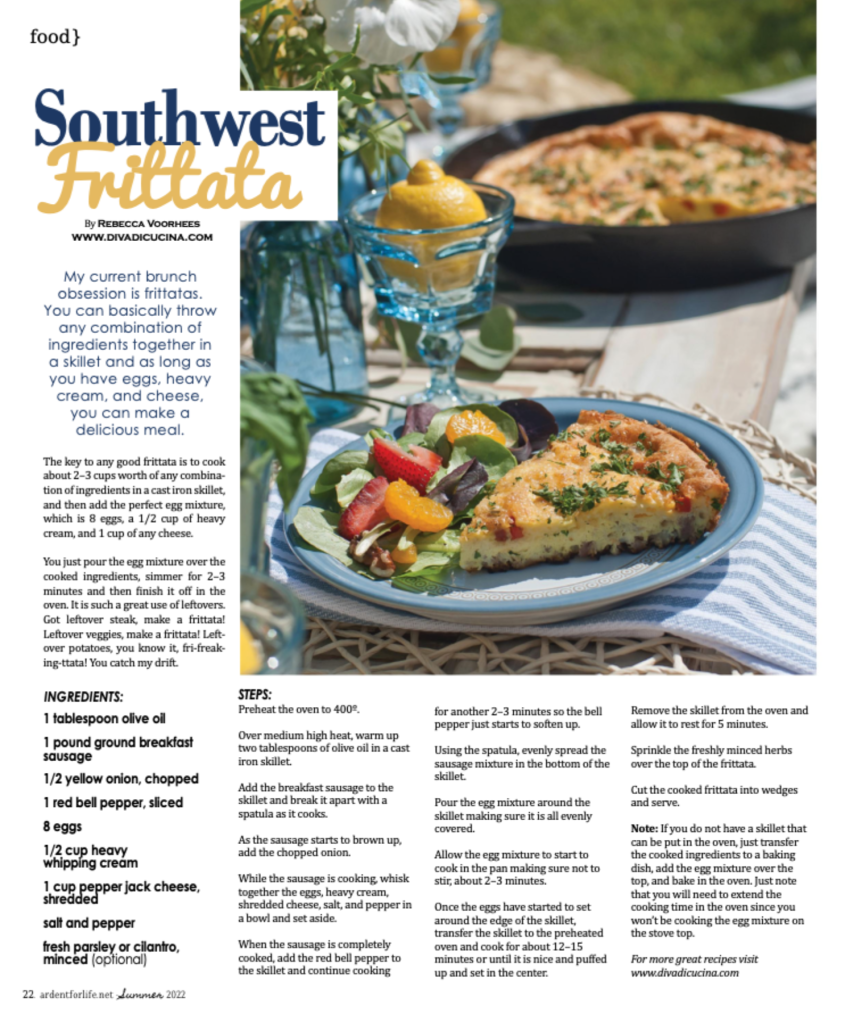 I initially went into this photoshoot thinking my dishes would just be photographed, so I was thrilled when the magazine told me they would like to include the recipes as well! Several weeks later I got the proofs from their designer and was floored to see that each recipe got a beautiful full page spread! And this story gets even better! A few days before going to print, I was notified by the magazine editor that my dish was selected to be the cover for the Summer 2022 issue of the magazine!