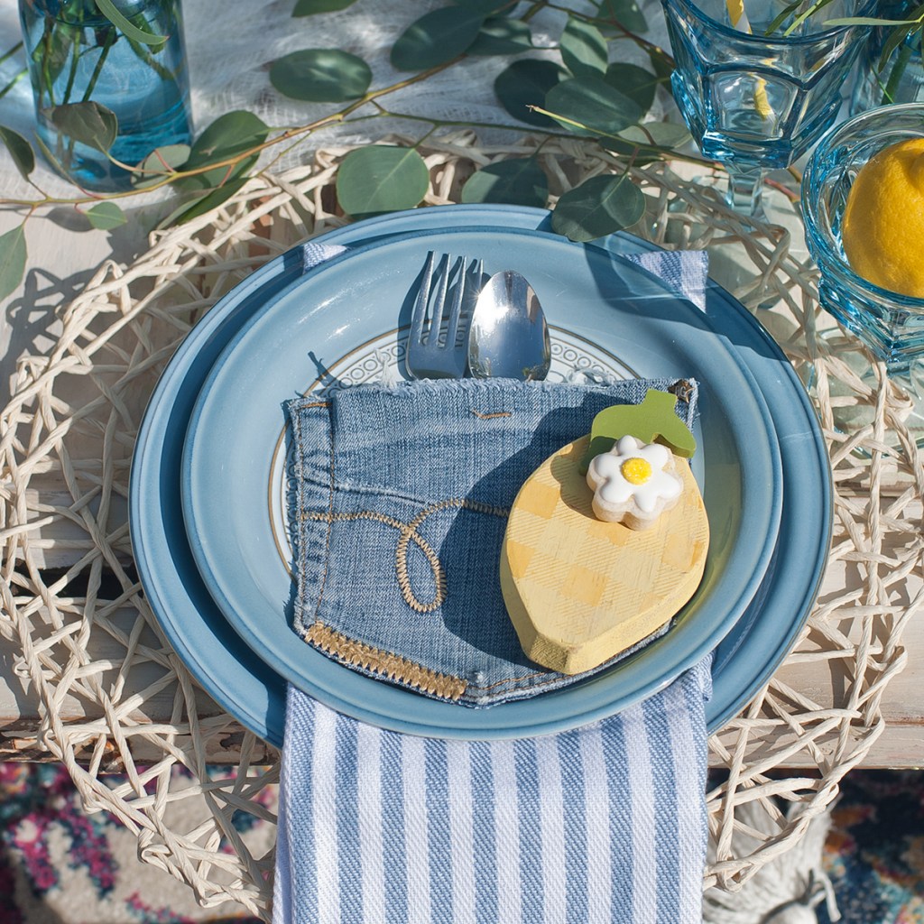 Every detail was perfection! From the wood cutout lemons, the denim pockets for the silverware, and all the blue dishes and glasses.