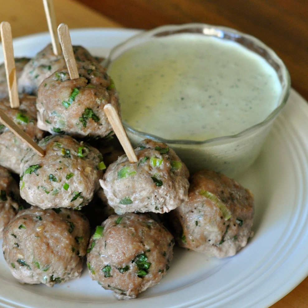 Every couple of months I get together with a fabulous group of ladies for a book club meeting. I don’t know why we really call it a book club meeting because about 20% of the time is spent discussing the book we read and the other 80% is spent drinking fabulous wines, eating delicious foods, and catching up with some good old fashioned girl talk. Maybe wine and food club meeting would be more appropriate? Either way, we always end with an awesome variety of the most wonderful treats. Our last meeting was on a Friday night right around dinnertime so I wanted to bring something filling and yet low carb (I try and cut out carbs from the food when I know I will be consuming plenty in the wine.) These were absolutely wonderful! They were light yet completely filling. The meatballs were packed full of wonderful Mexican flavors and they really complemented the turkey nicely. The refreshing creamy cilantro lime sauce is actually from a recipe I shared a couple months back for shrimp taco cups. I LOVED that sauce and wanted to make it again. I could put that sauce on everything. So tasty!