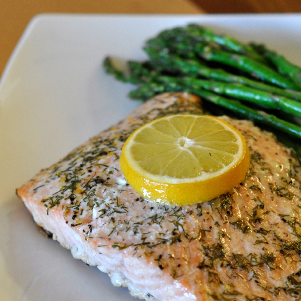 A couple times a year I like to complete an 11-day cleanse. It is just a way to flush out all these impurities and reset my digestive system. The weight loss is a huge perk too (Down 8 lbs! Wahoo!). For some reason during this last round I was craving salmon! And I mean REALLY craving it, like every day! I was daydreaming about a big slab of salmon covered in butter, lemon, and dill. I knew that would be one of the first dinners I would prepare for myself once I was done with the cleanse. This recipe did not disappoint. The fish was super moist and all the flavors and buttery goodness really seeped into the meat. I was shocked when even my 3-year old son devoured a huge chunk of the tasty fish. This recipe for oven baked salmon is ridiculously easy to make and super quick to get on the table. It also makes for a beautiful presentation. This may just be on the menu at my next dinner party.