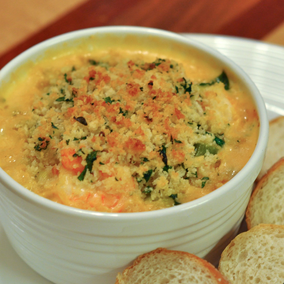 This recipe actually originated as a seafood gratin recipe, however I’m not a huge fan of lots of mystery fish thrown together so I adapted the recipe to suit my taste, and shrimp are my taste. This sauce ends up being creamy and rich and goes great with the shrimp and seasoned panko topping. This really is decadent enough to be served for a special occasion but also quick and easy enough for any night of the week. If you are scrambling to figure out what to do for Valentine’s Day dinner give this fabulous recipe a shot. Your sweetie won’t be disappointed, especially since you won’t have to spend the whole night in the kitchen. Throw together some greens for a salad and a French baguette to soak up the sauce and you have a romantic dinner in less than 40 minutes.