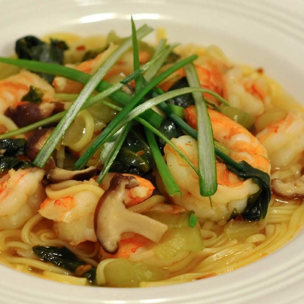- Add the cooked veggies to the pot with the sauce and shrimp and stir to combine. Remove from heat and set aside.