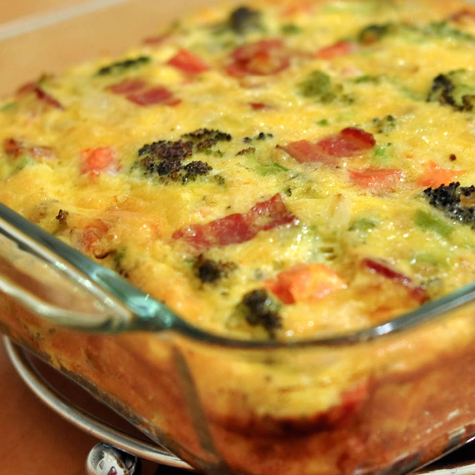- In a medium mixing bowl whisk together the eggs, broth, and heavy cream.