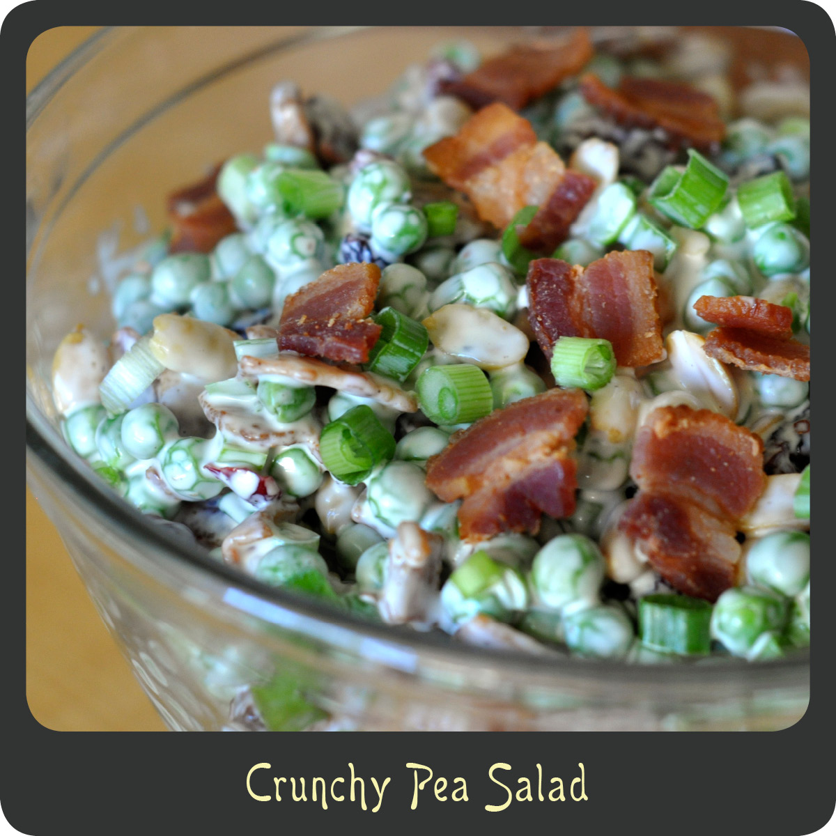 Peas tossed in a creamy dressing with bacon, craisins, and peanuts.
