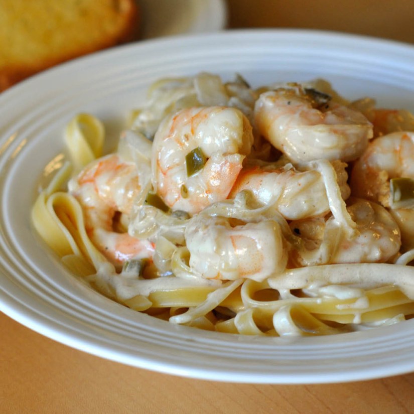Ever since my friend prepared me jalapeño mac n’ cheese (which was absolutely phenomenal by the way, and I hope to have that recipe very soon, *wink wink* Nicole. 😉 I have been craving jalapeños and pasta with some sort of creamy sauce. Then low and behold I stumbled upon a recipe on another blog for shrimp in jalapeño cream sauce. That blogger made her recipe and served it over rice but I knew I wanted to put my own twist on it and go with a pasta. All I have to say is AWE-SOME! Think of this as a decadent jalapeño popper but as a main course. It wasn’t over the top spicy but it just had the perfect little bite to it. And you know what else I loved about this recipe? It took barely 20 minutes from start to finish! It was exactly what I needed after my insanely busy day. Even if you are sitting there all sketpical about this recipe, open your mind and give it a try. It may sound weird but oh heavens, it is delicious!