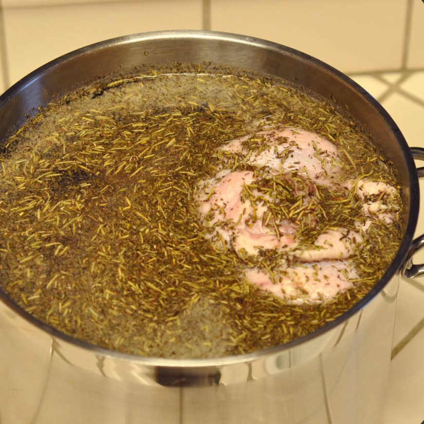About 30 minutes before cooking, remove the marinated chicken from the bag and place in a shallow dish. Allow the chicken to rest at room temperature for about 30 minutes before grilling. - Preheat the grill to 350º.